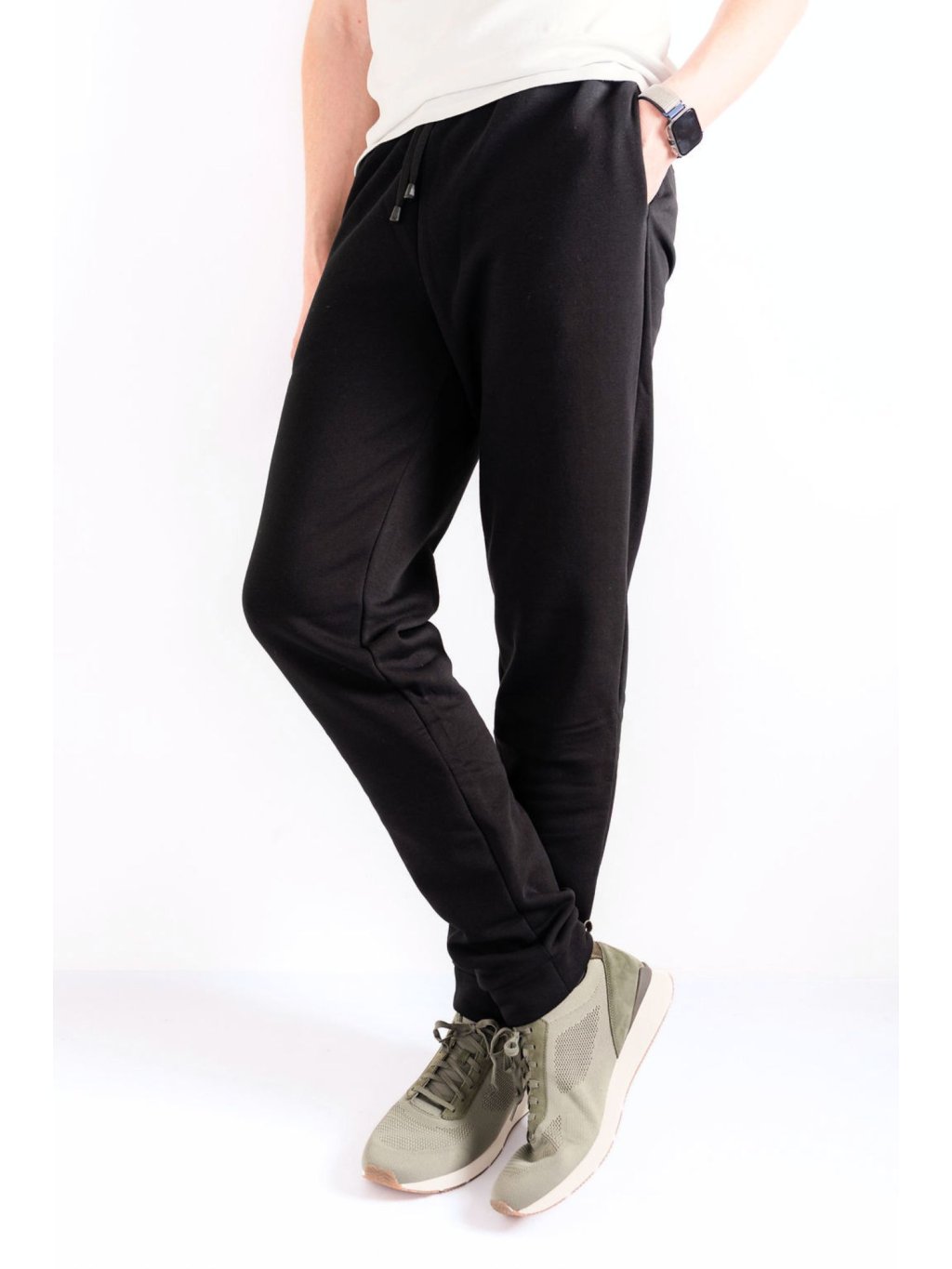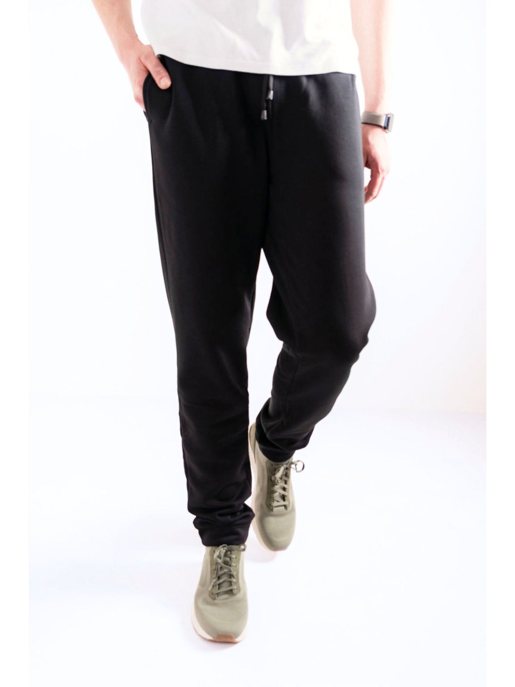Černé tepláky Longster jsou ušity z příjemné počesané teplákoviny, která je hebká na dotek. V pase jsou opatřeny pružnou gumou a lze je pohodlně stáhnout pomocí černé tkanice. Na zadní straně se nachází jedna praktická kapsa.