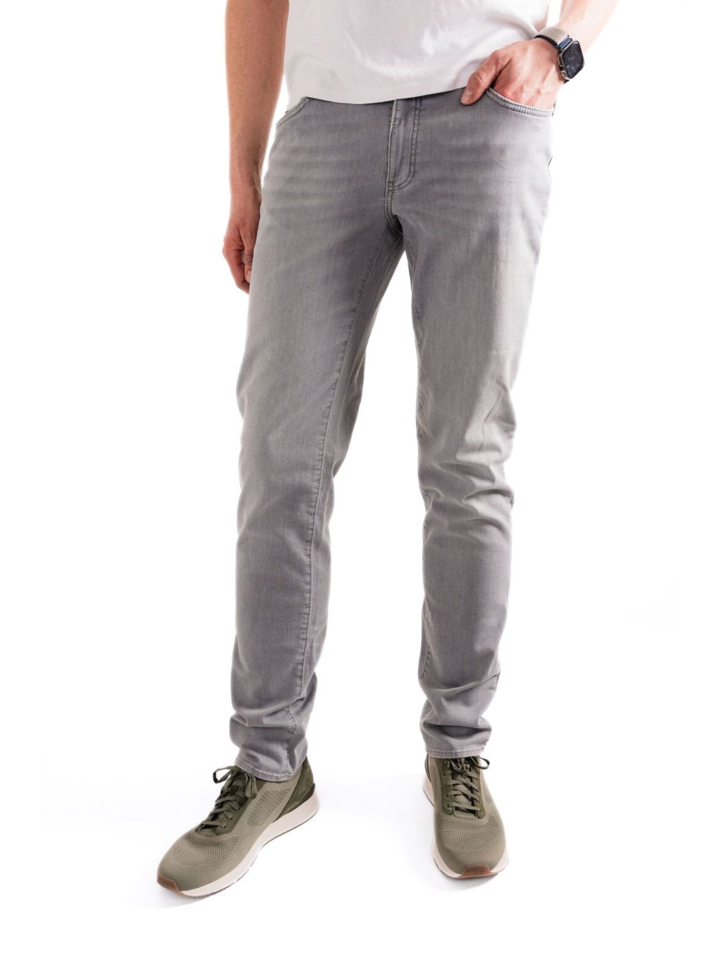 Prodloužené pánské džíny Cadiz ve svěží světle šedé barvě byly navrženy tak, aby perfektně seděly mužům, kteří potřebují delší délku nohavic, aniž by museli dělat kompromisy v designu nebo kvalitě.
